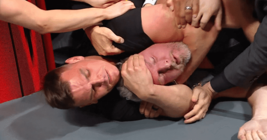 Il enferme Pat dans une prise d’étranglement et emmène le commentateur au sol. La superstar a maintenu l’étranglement pendant un long moment et ne l’a lâché que lorsque McAfee a semblé s’évanouir.