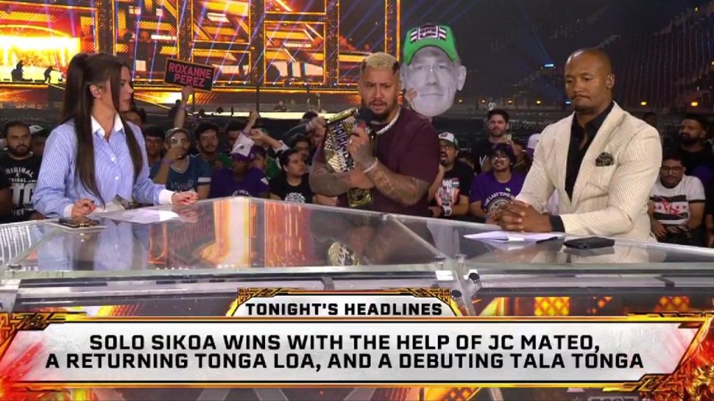 The screen graphic read, “Solo Sikoa wins with the help of JC Mateo, A returning Tonga Loa, and a debuting Tala Tonga.” Interestingly, WWE had originally trademarked the name as Talla Tonga, but used the spelling Tala Tonga during the show.