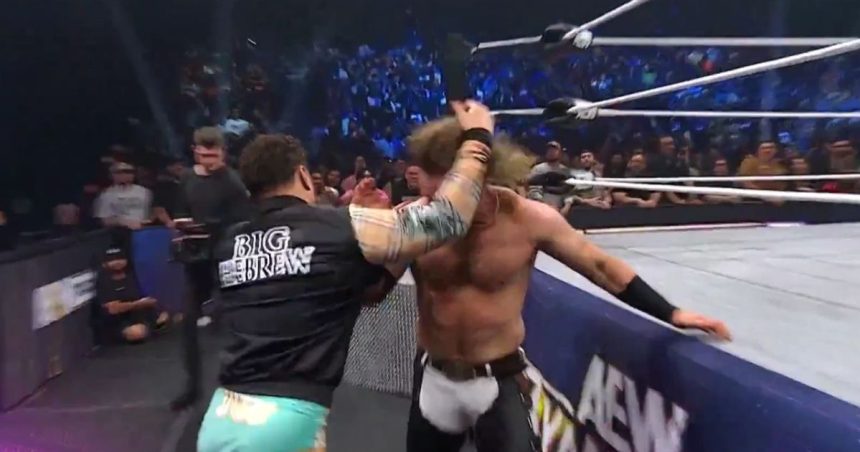 Alors que Page semblait reprendre de l’élan pour son équipe, MJF a soudainement fait irruption dans le ring et l’a frappé avec la bague de diamant Dynamite. Cette attaque surprise a mis Page hors de combat instantanément, laissant Knight seul face à trois adversaires.
