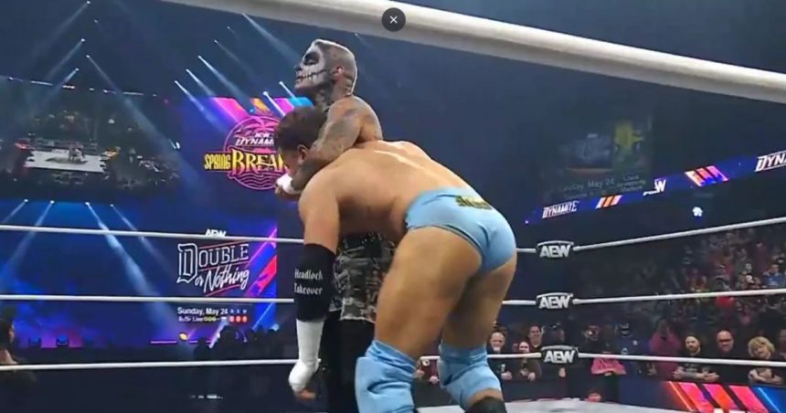 Lorsque le match a finalement commencé, MJF a tenté de tricher en remettant sa bague Dynamite Diamond à l’arbitre, Aubrey Edwards, puis en donnant un coup bas à Allin. Mais cela n’a pas fonctionné longtemps.